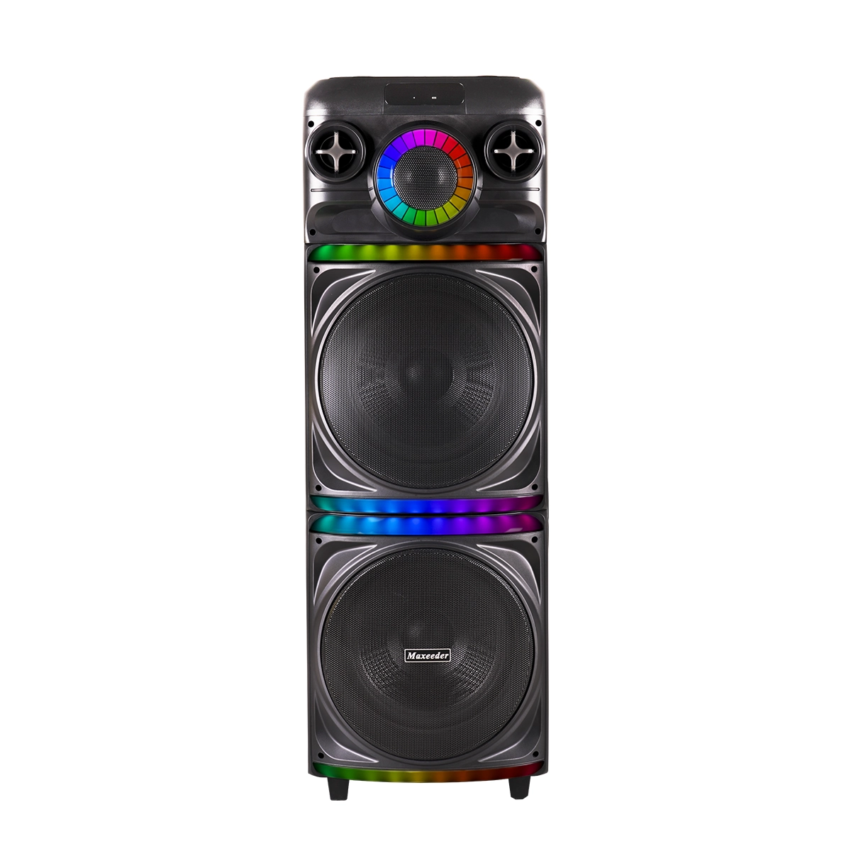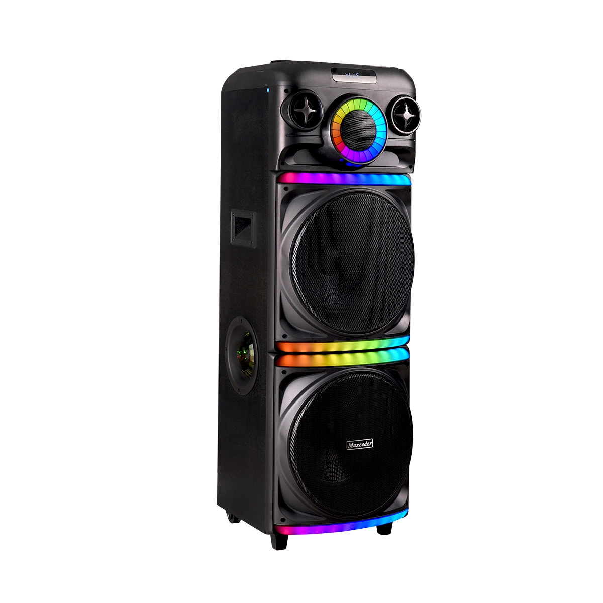 به دنیای خیال انگیز بزم و شادی خوش آمدید؛ اسپیکر CN12E07 مکسیدر به عنوان یک جواهر فناوری، شما را وارد دنیایی از صدا و نور میکند. این اسپیکر با دو ساب ووفر ۱۲ اینچ و تیوتر، به شما امکان میدهد تا به تجربهای عمیق و فوقالعاده از موسیقی دست یابید. دو نور جانبی Light Ball، نگاه همهی حضار را به خود جذب میکند و با رقص نور چرخشی RGB دور سابها، هر نغمه را به یک جشن نوری تبدیل میکند.