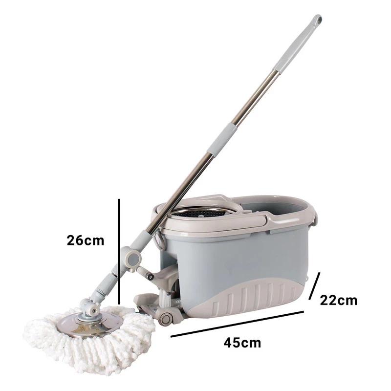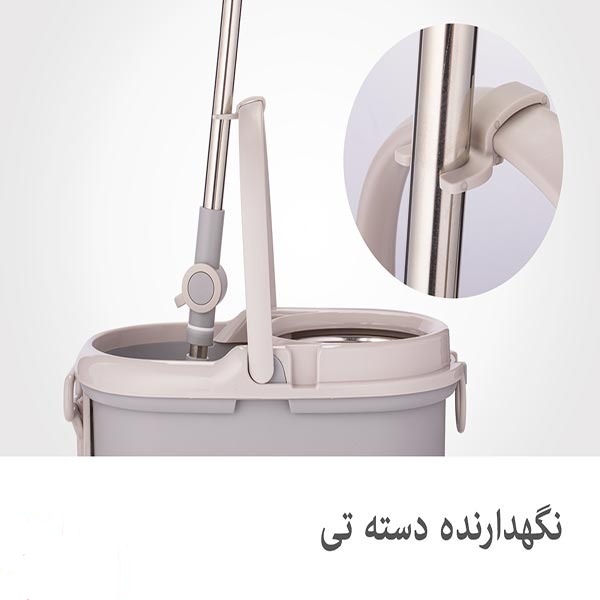 این محصول شامل دو محفظه می باشد که یک محفظه برای شستن پد میکروفایبر و دیگری که به صورت یک سبد آبکش استیل می باشد برای خشک کردن و گرفتن آب اضافی پد است. برای اینکه سبد آبکش شروع به چرخش کند و آب اضافی پد را سریعتر بگیرد کافی است با پا پدال را فشار دهید. در واقع به کمک این مدل جدید از سطل و زمین شوی شما می توانید با کمترین زمان بین تمیز کردن خشک و یا تمیز کردن مرطوب انتخابی مناسب داشته باشید.