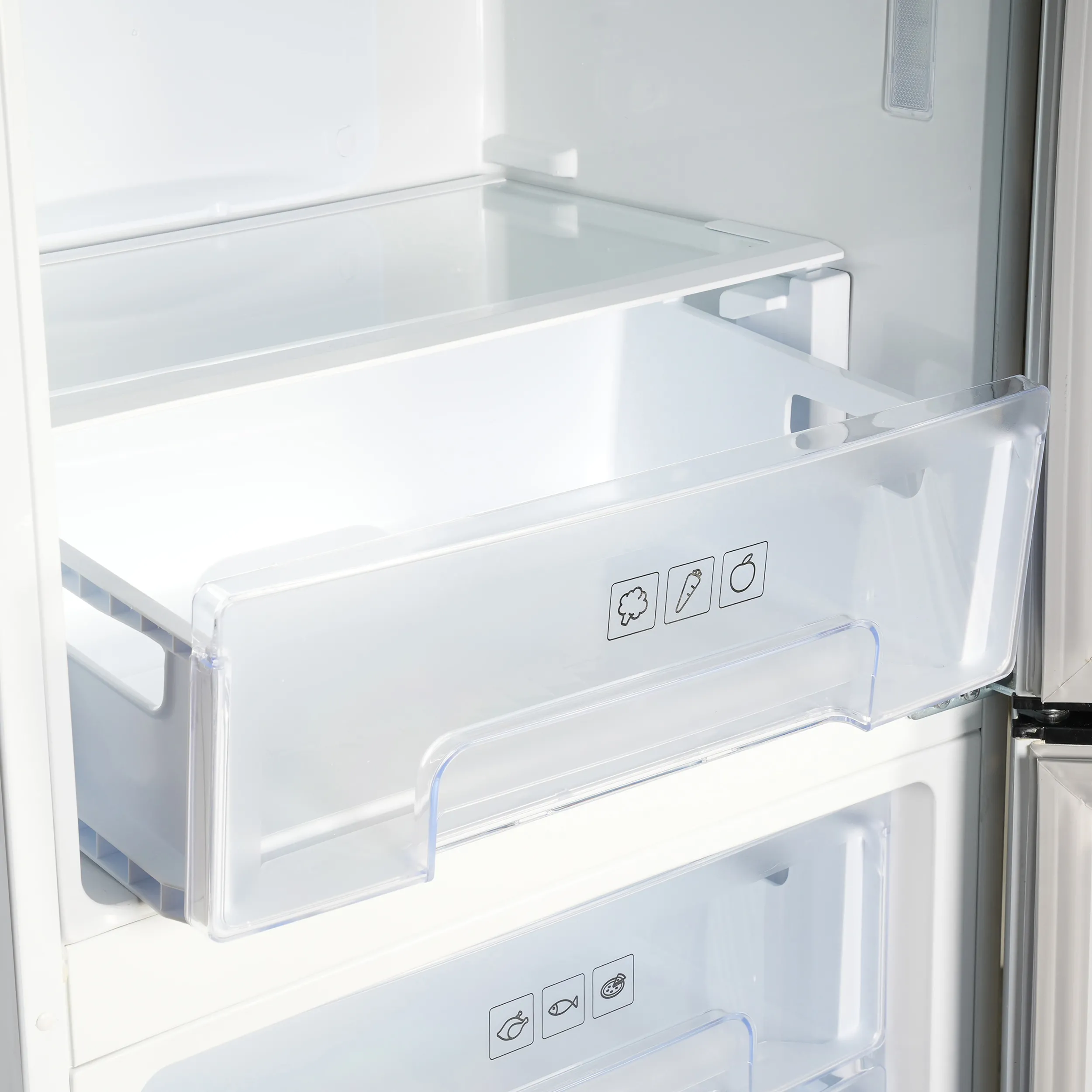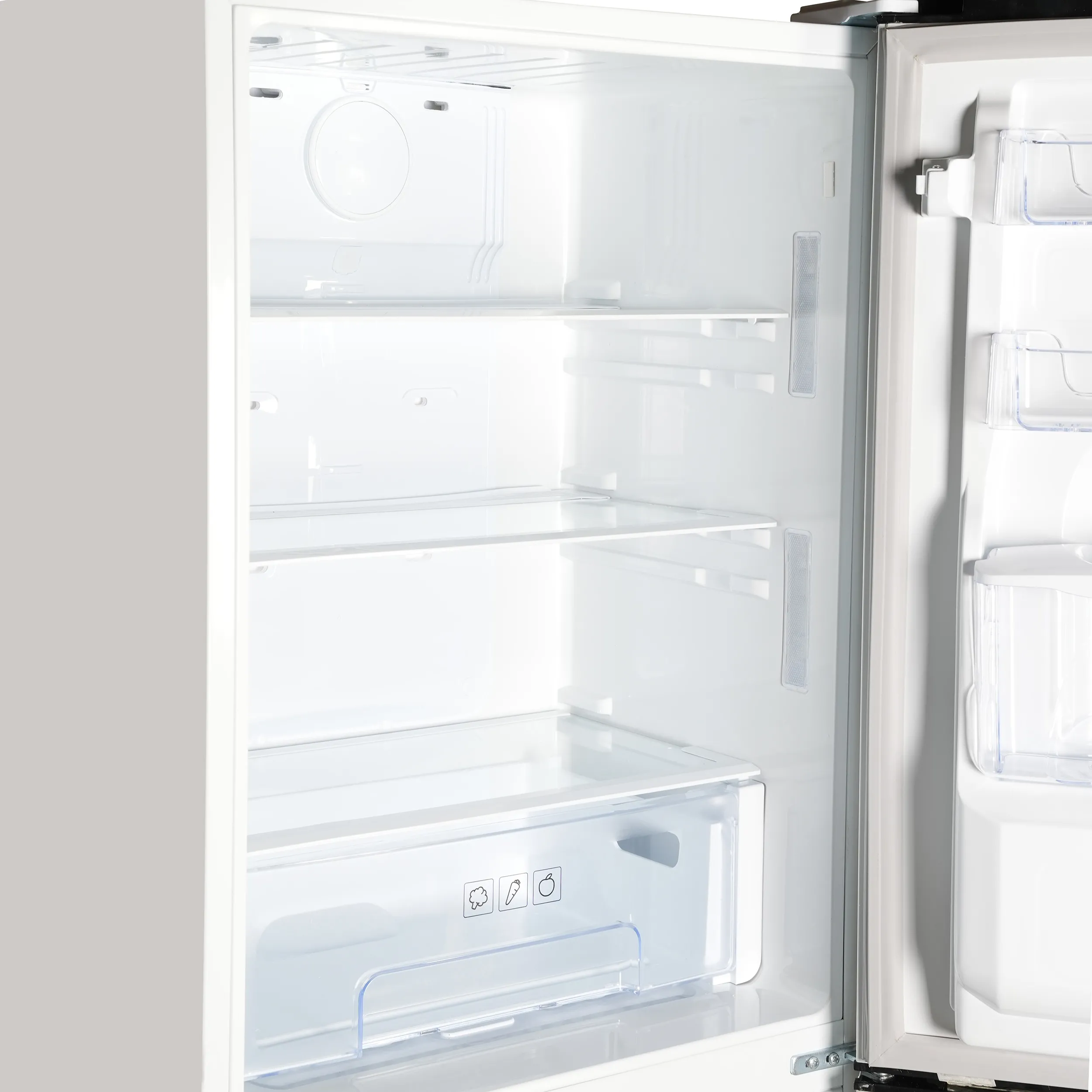 فضای داخلی با ۳ طبقه شیشهای مقاوم، ۵ کشوی بزرگ و ۶ شلف درب طراحی شده تا مواد غذایی با نظم بیشتری جای بگیرند. کشوی مخصوص میوه و سبزیجات با قابلیت تنظیم رطوبت، تازگی محصولات را طولانیتر حفظ میکند. وجود سیستم Twin Cooling نیز یک مزیت بزرگ است؛ چرا که سرمایش یخچال و فریزر را جداگانه مدیریت میکند تا نه رطوبت یخچال از بین برود و نه بوی مواد فریزر وارد یخچال شود. گردش هوای چندگانه و سیستم سرمایش سریع هم تضمین میکنند که مواد غذایی در همه بخشها با دمایی یکسان نگهداری شوند. آبسردکن دستی این مدل هم کاربری روزمره را راحتتر میکند.