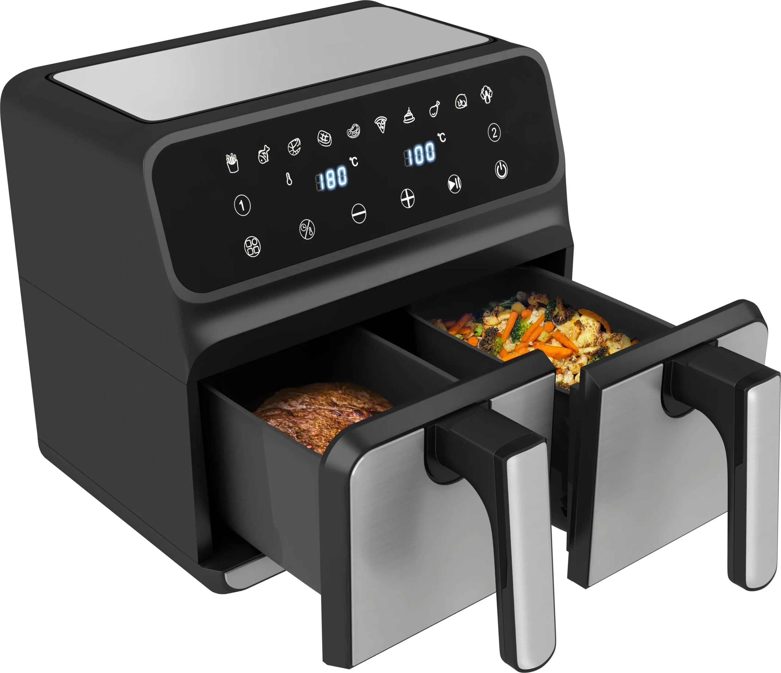 این سرخ کن(هواپز) دارای دو کابین برای پخت مجزا می باشد که هر کابین دستور پخت متفاوتی را اجرا می کند،شما می توانید بدون روغن غذای رژیمی خودتون رو درست کنید